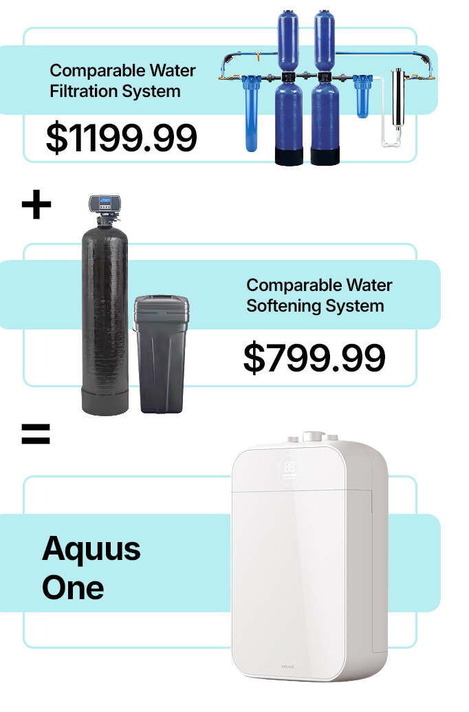With its one-of-a-kind filter + softener combination, it targets both chemical and mineral impurities found in your tap water. By addressing both, it allows hair and skin to look and feel their absolute best, naturally. Aquus One works the same way as the bulky whole-house filtration and softening systems, packed into a compact, renter-friendly and affordable design.